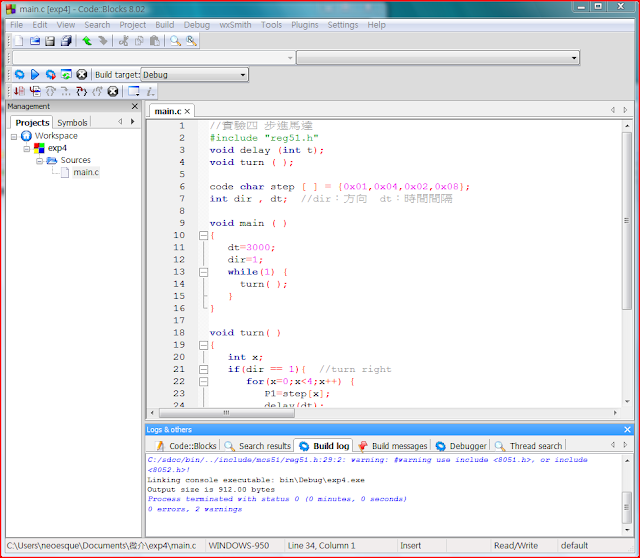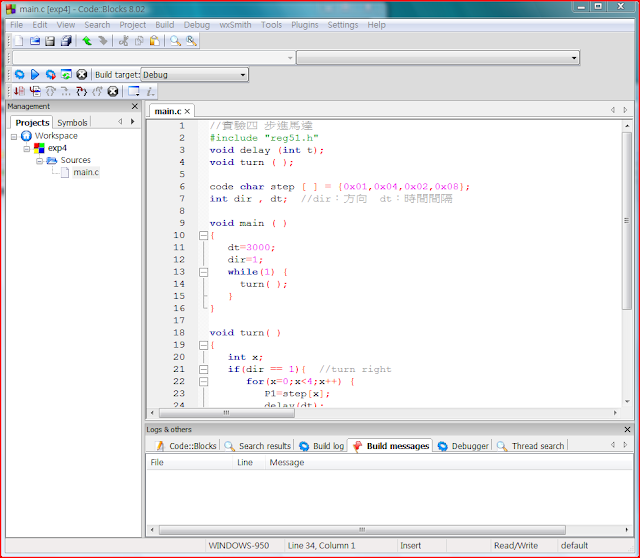 所謂 "工欲善其事必先利其器" ,在 8051 程式開發上,當然也有許多 compiler 選擇,最常見的不外乎 Keil C ,但是由於 Keil C 是商業軟體要賣錢的,因此對於學生的我們似乎不是那麼適用,另外一個也是相當知名但非商業軟體的要算是 SDCC 了,由於 SDCC 本身只有 compiler 並沒有 IDE ,所以在編譯程式上顯得格外麻煩。前幾天在想 Dec-C++ 可不可以跟 SDCC 整,網路搜尋似乎是有這種 plugin 的,可是我找不到了,而且 Dev-C++ 也很久沒開發了,因此想說換找另一個目前當紅的 IDE -- Code::Blocks (以下用 CodeBlocks 稱乎) ,果然 CodeBlocks 有跟 SDCC 整在一起,這樣方便多了,以下將逐步介紹如何利用 CodeBlocks + SDCC 編譯出 8051 可以用的 Hex file。