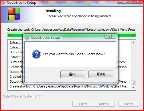 裝完後會問你要不要執行 Code::Blocks 先點[否]吧!