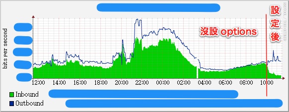 reload squid config 後在觀察 發現 in-bound 果然大幅下降 而 log 也顯示 TCP_IMS_HIT / TCP_HIT / TCP_MEM_HIT 大量上升